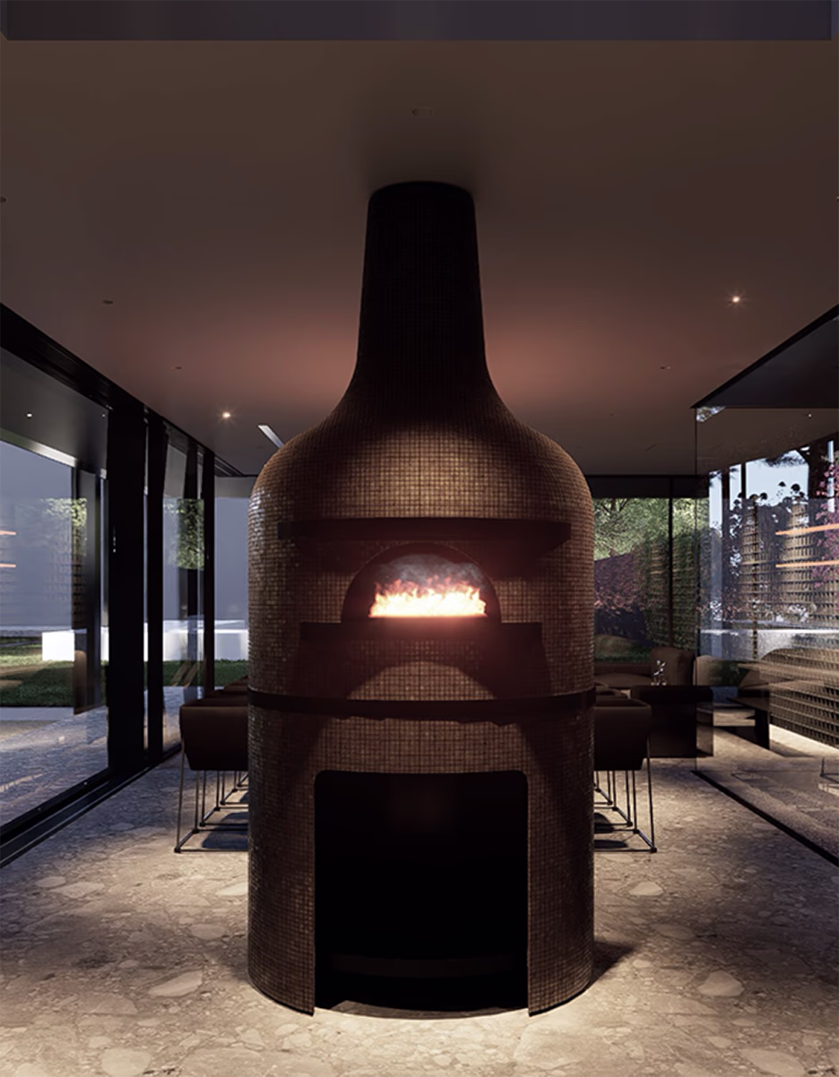 W przestrzeni kuchennej króluje murowany piec do pizzy opalany gazem polskiej marki Calabria. Każdy piec jest wyjątkowy, każdy robiony na zamówienie i każdy daje wzorowe warunki do wypiekania prawdziwie włoskiej pizzy.